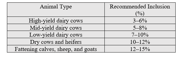 Introduce gradually over 10 to 14 days by mixing into the concentrate portion of the ration. As this product is incorporated, reduce amounts of corn, barley, and wheat bran proportionally.
